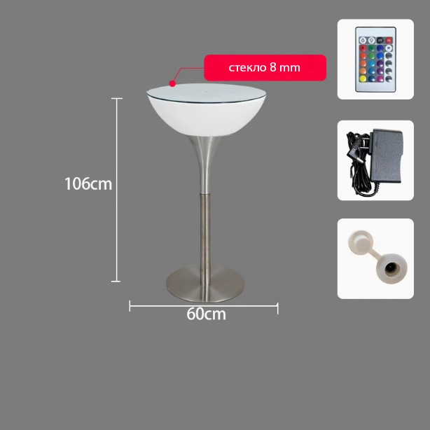 Стол светящийся круглый на металическом основании 60х60х110